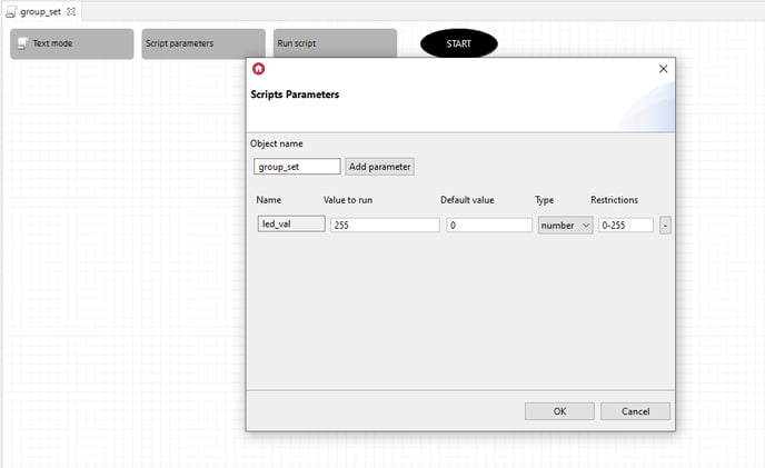 1. Create a script responsible for group control and then add a script parameter: