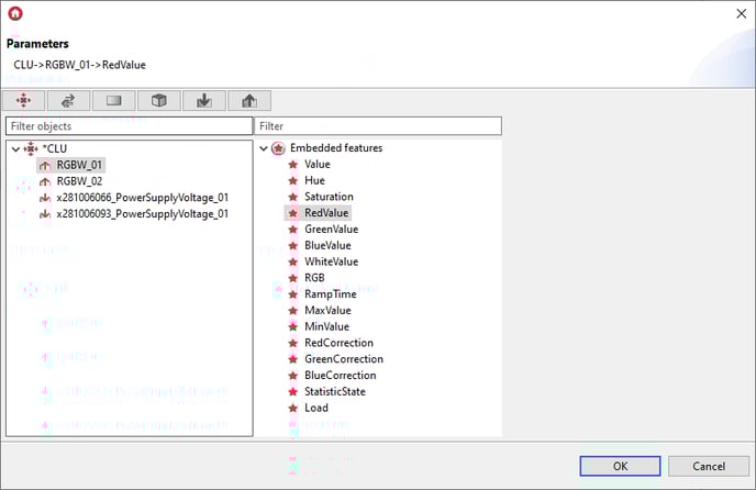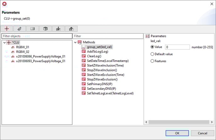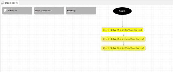 2. Using the Action component, set the parameter value in the selected channels of the RGBW LED module / modules: