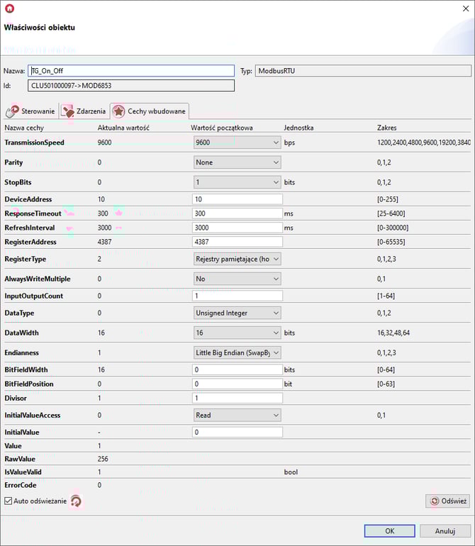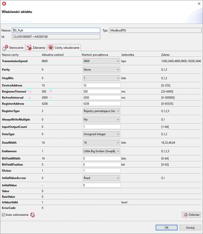 Konfiguracja obiektów wirtualnych Modbus RTU
