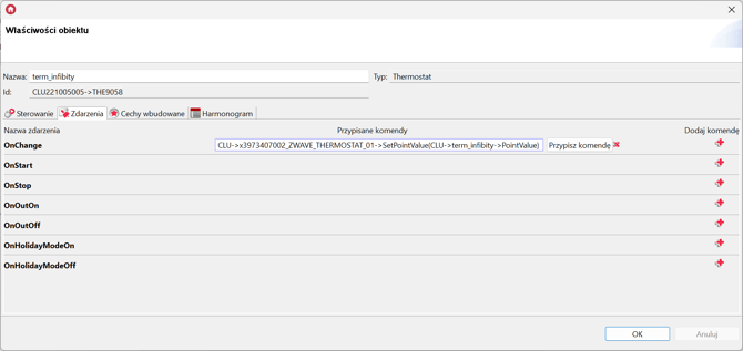 ZdarzeniaTermostatu, a następnie do zdarzeniaOnChangeprzypisać metodęSetPointValuegłowicy o wartości równejPointValuetermostatu: