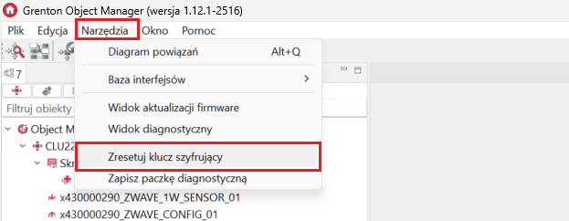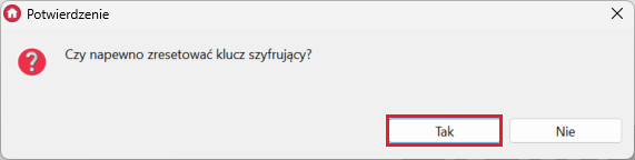Narzędzia->Zresetuj klucz szyfrujący.